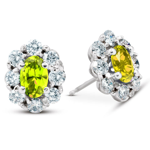 3 Ct Citrine & Diamond Halo Studs 14k White Gold
