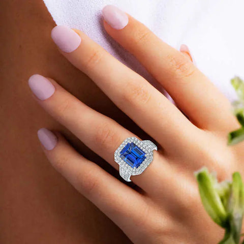4 1/2Ct TW Emerald Cut Tanzanite & Lab Grown Diamond Ring in 14k White Gold