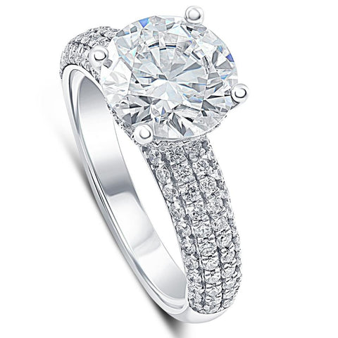 4 Ct Pave Round Diamond Engagement Ring in White Gold Lab Grown