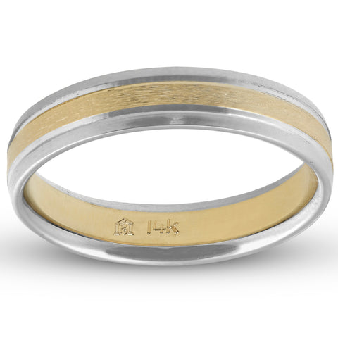 4MM 14k White & Yellow gold Two Tone Satin Womens Wedding Band