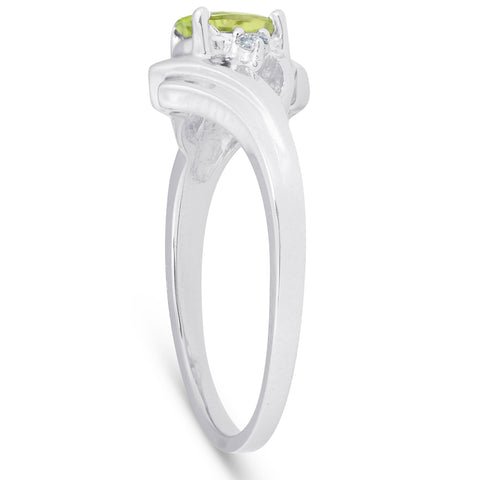 5/8ct Oval Peridot & Diamond Ring 14K White Gold