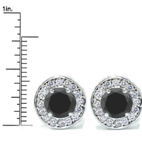 5/8ct Black & Diamond Round Halo Studs 14K White Gold 1/3"