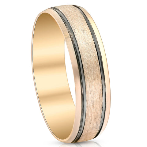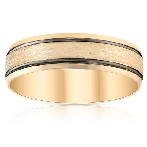6mm 10k Yellow Gold Mens Brushed Black Inlay Wedding Band