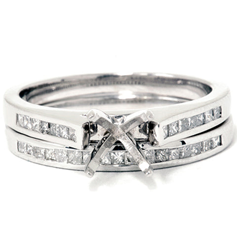 7/8ct Princess Cut Diamond Semi Mount Engagement Wedding Ring Set 14K White Gold