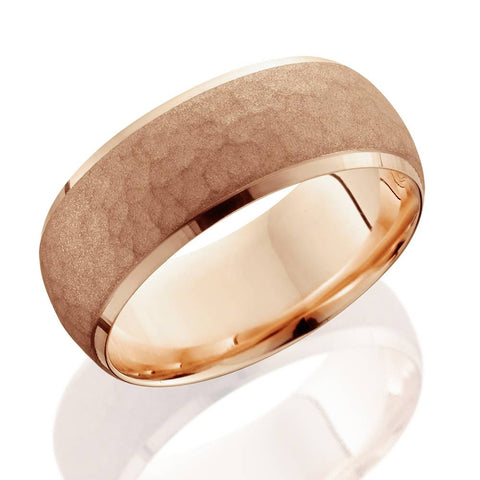 7mm 14K Rose Gold Hammered Wedding Band Beveled Edge Mens