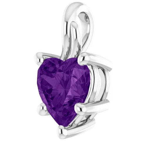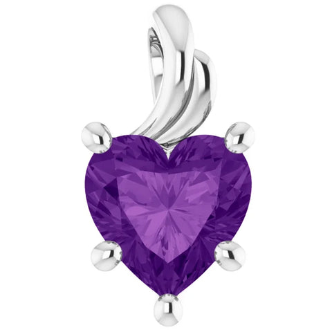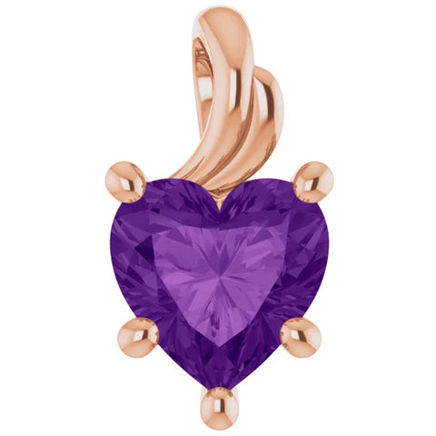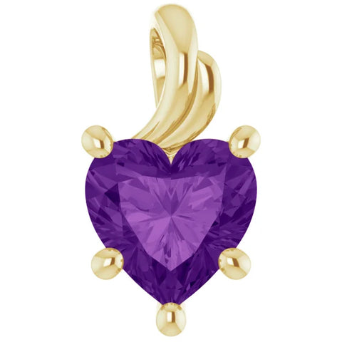 7mm Amethyst Women's Heart Pendant in 14k Gold Necklace 5mm Tall