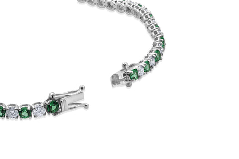 8ct Emerald & Diamond Tennis Bracelet 14K White Gold 7"