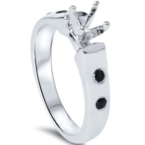 Black Diamond Semi Mount Cathedral Engagement Ring 14K Setting