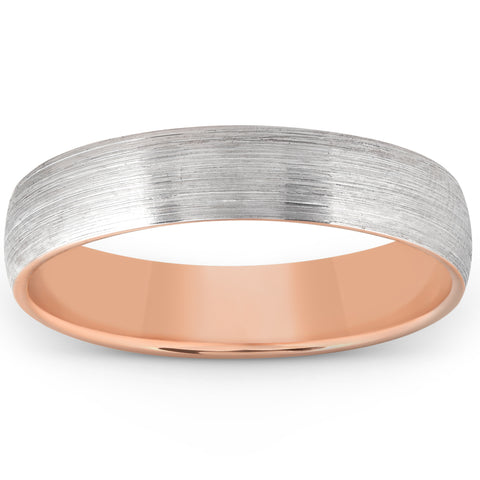 Brushed Rose Gold Two Tone Mens 5MM Dome Wedding Band Plain Polished Ring 10k