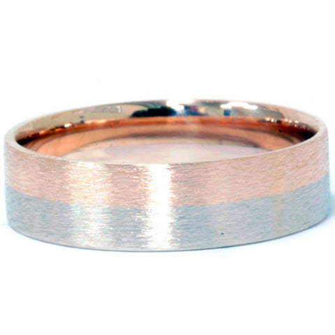 Brushed Two Tone Flat Wedding Band 14K Rose & White Gold