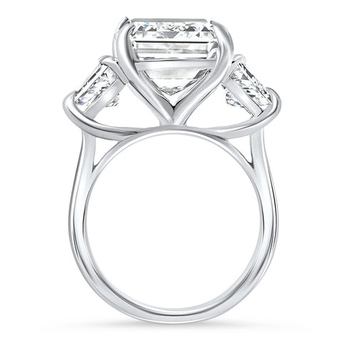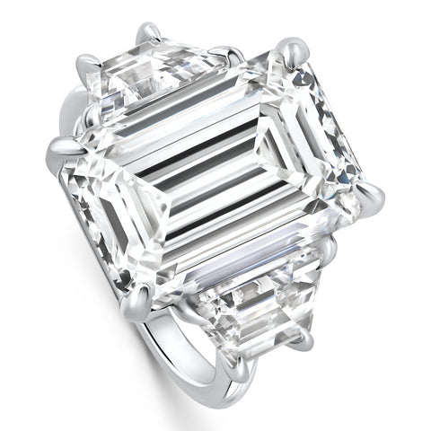 Certified 11.90Ct Emerald Diamond & Trapezoid Engagement Ring Lab Grown 14k Gold