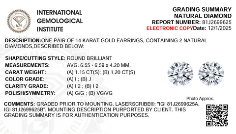 This appraisal certificate confirm the authenticity for your jewelry and recognized by all insurance companies. Color, clarity, carat weight, metal content, authenticity, and replacement value are all graded on this certification.