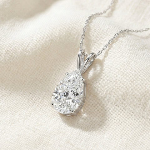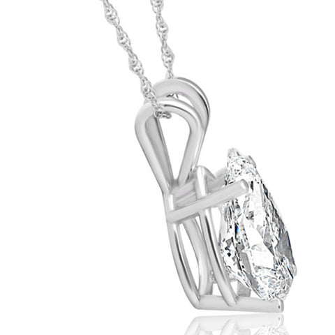 Certified 2 Ct Pear Shape Lab Grown Diamond Pendant 14k White Gold Necklace
