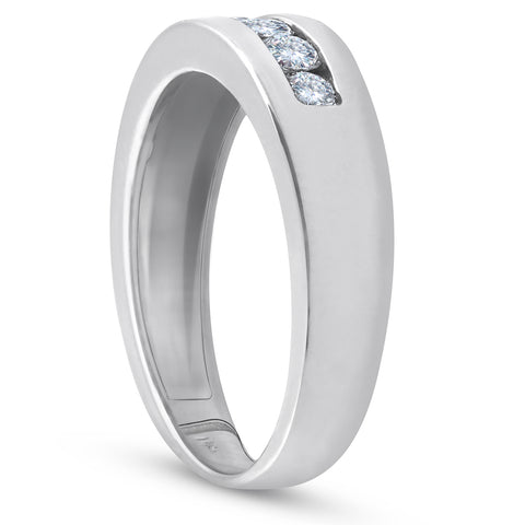1ct Channel Set Mens Diamond Wedding Ring 14K White Gold