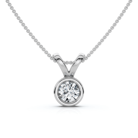 Dainty Stackable Solitaire Bezel Diamond Pendant 14k Gold Lab Grown EF/VS