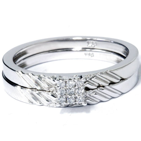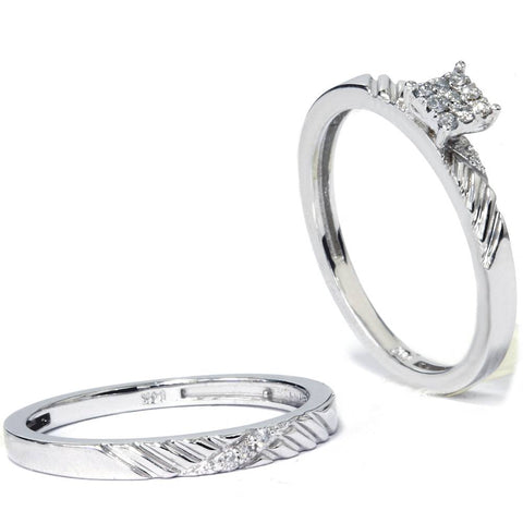 Diamond Engagement Matching Wedding Ring Set 14K White Gold