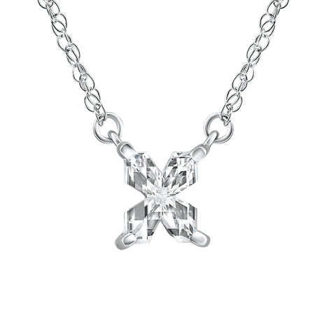 Diamond "X" Initial Pendant 18" Necklace 14K White Gold Lab Grown