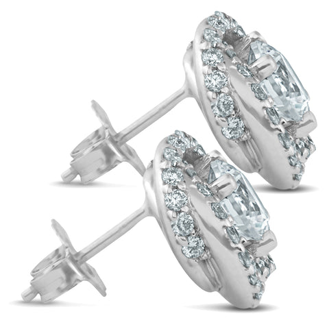 1 3/4 Ct Halo Diamond Studs Sprial 10.9mm Womens Earrings 14k White Gold
