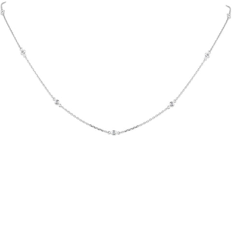 1/4ct Diamonds Bezel Station Necklace 18" 14K White Gold Womens