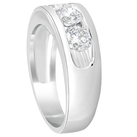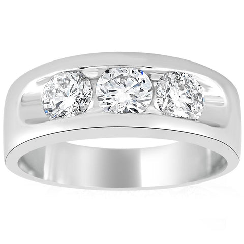 2 1/4Ct Diamond Men's Three Stone Ring 10k White Gold Lab Grown