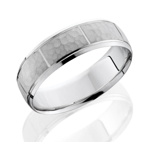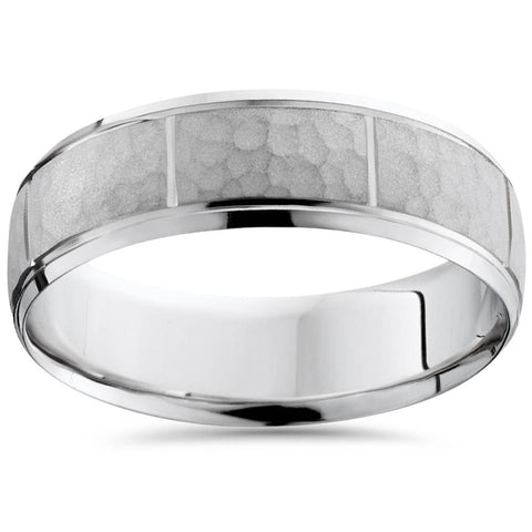 Hammered Mens 7mm Wedding Band 10K White Gold