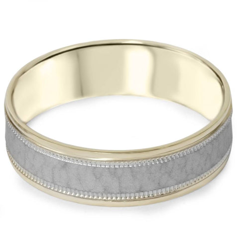 Hammered Two Tone Wedding Band 14K Gold 6mm Flat