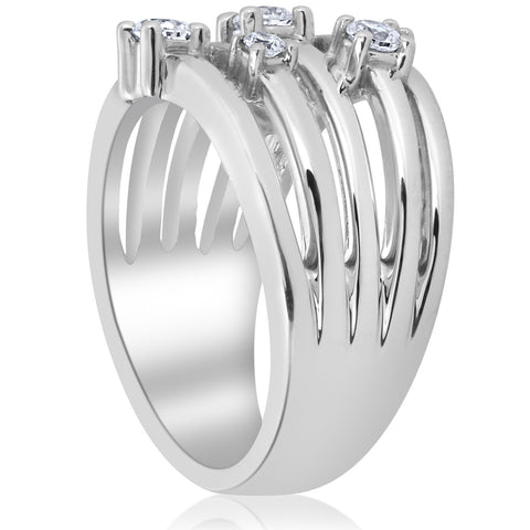 3/4ct Diamond Multi Row Wide Right Hand Ring 10k White or Yellow Gold