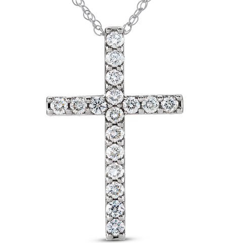 3/4Ct Lab Grown Diamond Cross Pendant 14k White Gold 18" Necklace 1 1/4" (HI/SI)