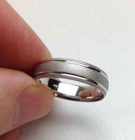 Mens 10K White Gold Comfort Sandblast Finish Wedding Band