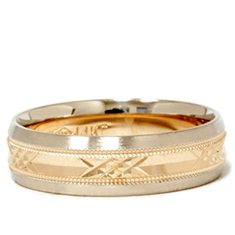 Mens 14k Gold Two Tone Swiss Cut Wedding Ring Band New