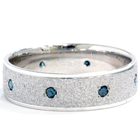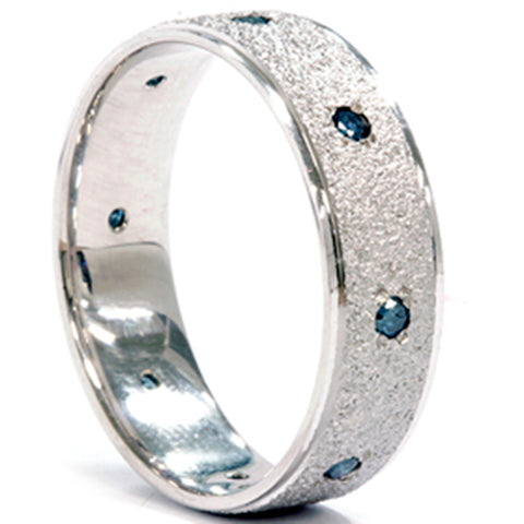 Mens 14K White Blue Diamond 1/3ct Stone Finish Wedding