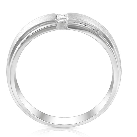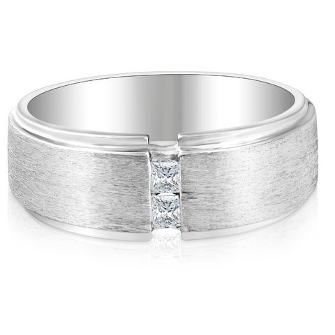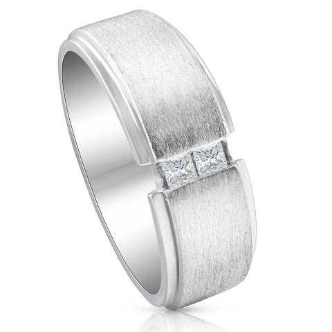 Mens 14K White Gold Brushed Princess Cut Diamond Wedding Ring