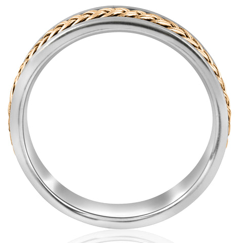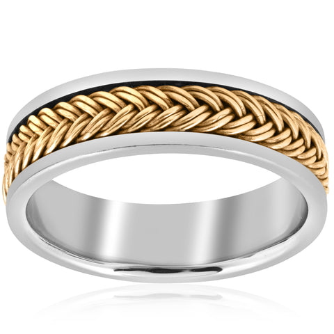 Mens 14K White Yellow Gold Two Tone Braided Band Ring Comfort Fit