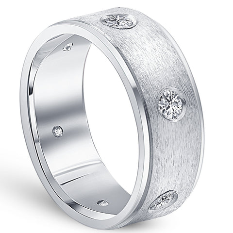Mens 1ct Diamond Comfort Fit Wedding White Gold Ring