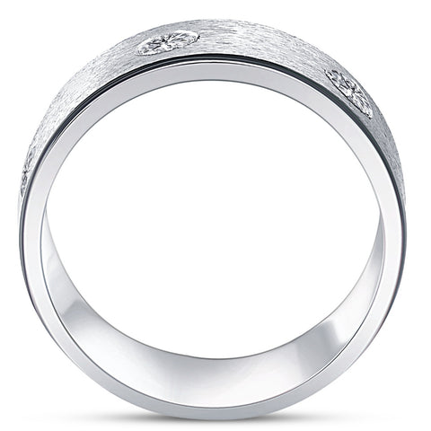 Personalize your wedding band with up to 26 characters including spaces. We offer a legible block font for all rings without diamonds.