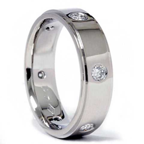 Mens 3/4ct Flat Step Cut Diamond High Polished Wedding Band 14k White Gold