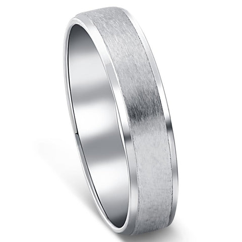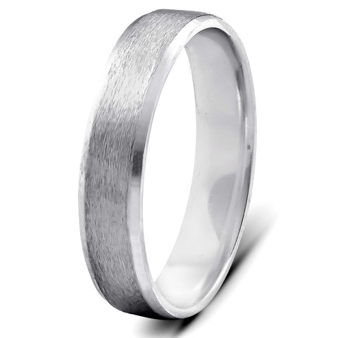 Mens 5mm 10K White Gold Brushed Wedding Band