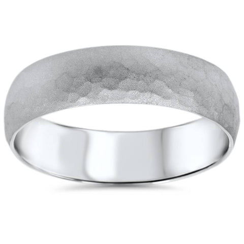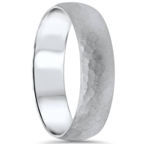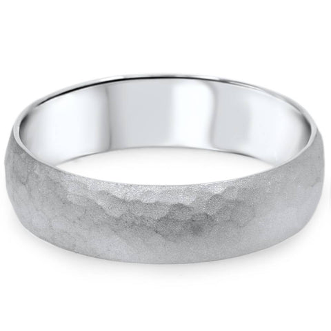 Mens Hammered White Gold Wedding Band Milgrain Ring 6mm