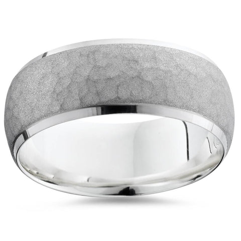 Mens 950 Platinum 7mm Hammered Wedding Ring Band New