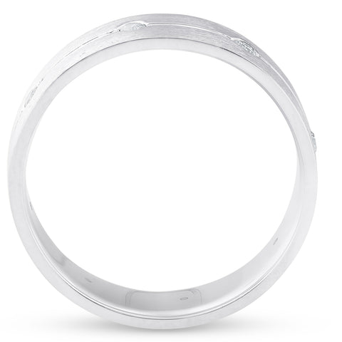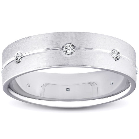 Mens Comfort Fit Bezel Diamond Wedding 14K Band 6mm Mens White Gold Ring