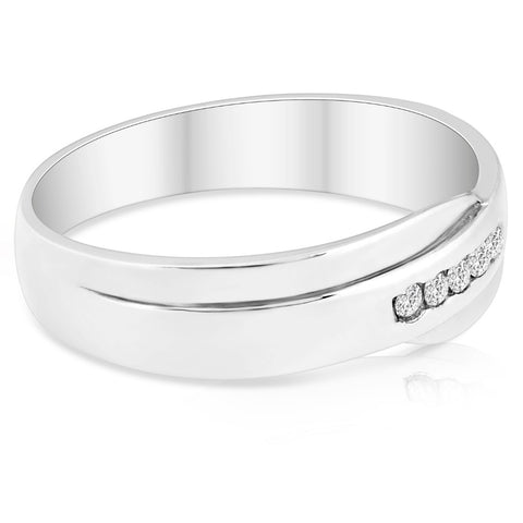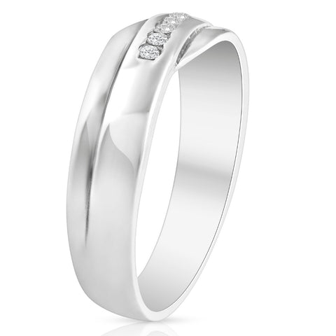 Mens Cut Diamond Wedding Ring 1/6cttw 10K White Gold High Polished Channel Set