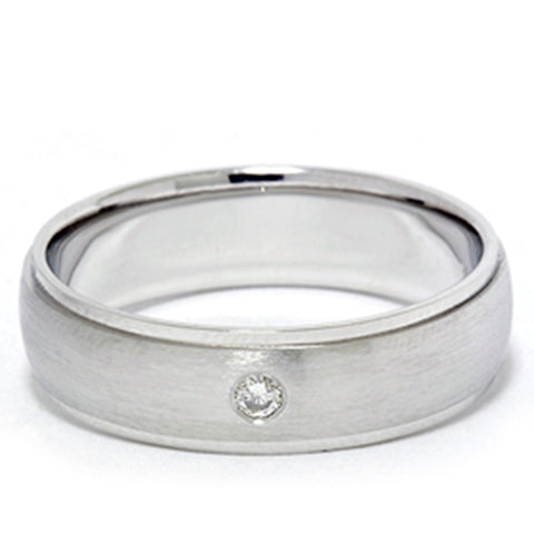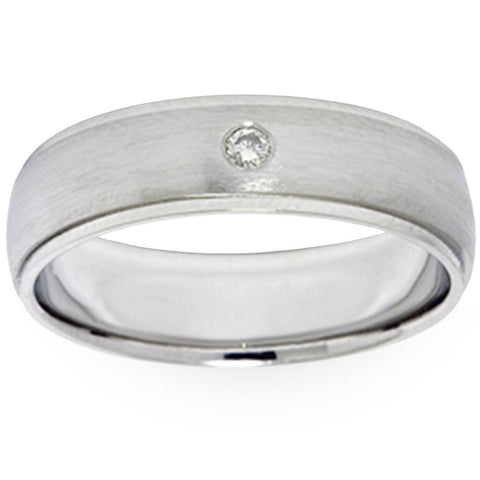 Mens Bezel Diamond Solitaire 14K White Gold Wedding Ring Band