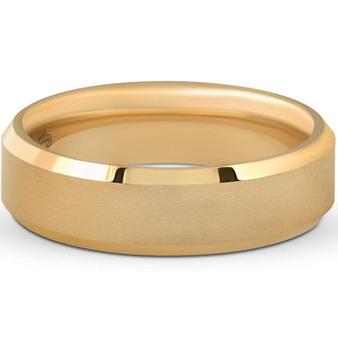 Mens Gold Plated Tungsten Ring 6mm Comfort Fit Brushed Beveled Edge Wedding Band
