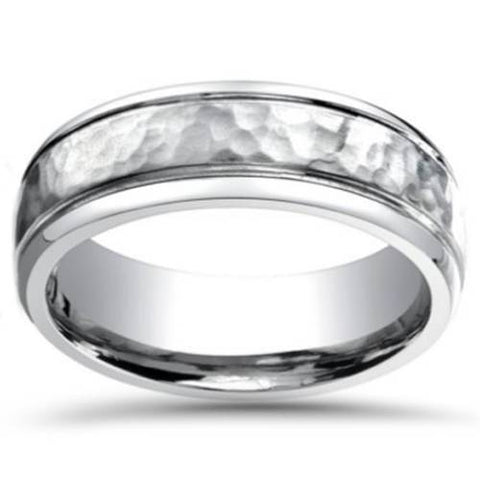 Mens Hammered 6mm Wedding Band 10K White Gold