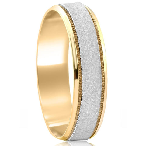 Men's Hammered Platinum & 18K Yellow Gold Two Tone Comfort Fit Wedding Band