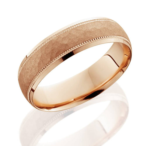 Mens Hammered Wedding Band 14K Rose Gold 6mm