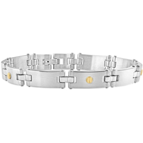 Men's Polished Steel And Dark Gold Two Tone Flexible 8mm Link 8.5 " Bracelet