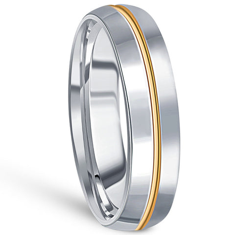 Men's Polished Tungsten & Gold Plated Two Tone 6mm Ring Wedding Band