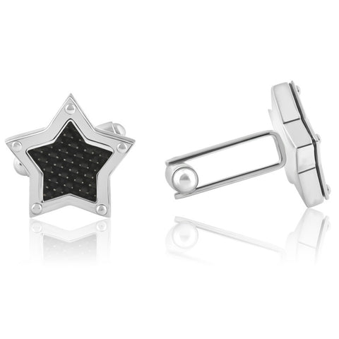 Men's Stainless Steel And Black Carbon Fiber Star Polished Cufflink 18.5mm
