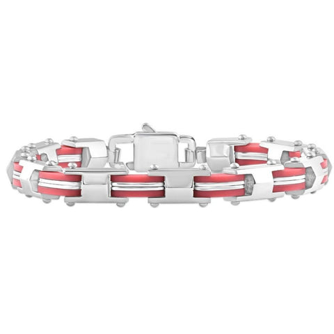 Men's Steel And Red Two Tone 8mm Link Flexible Trigger Clasp 8.5 " Bracelet
